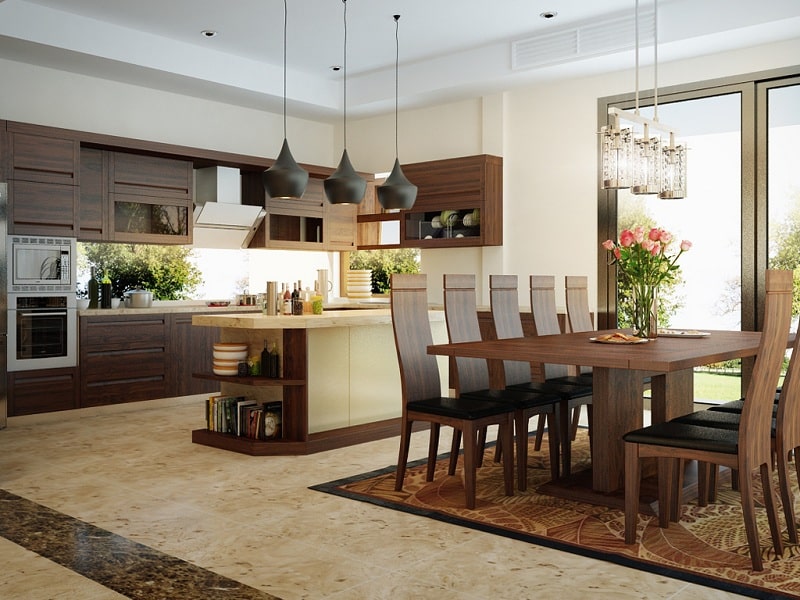 Nội thất phòng bếp đẹp với chất liệu gỗ